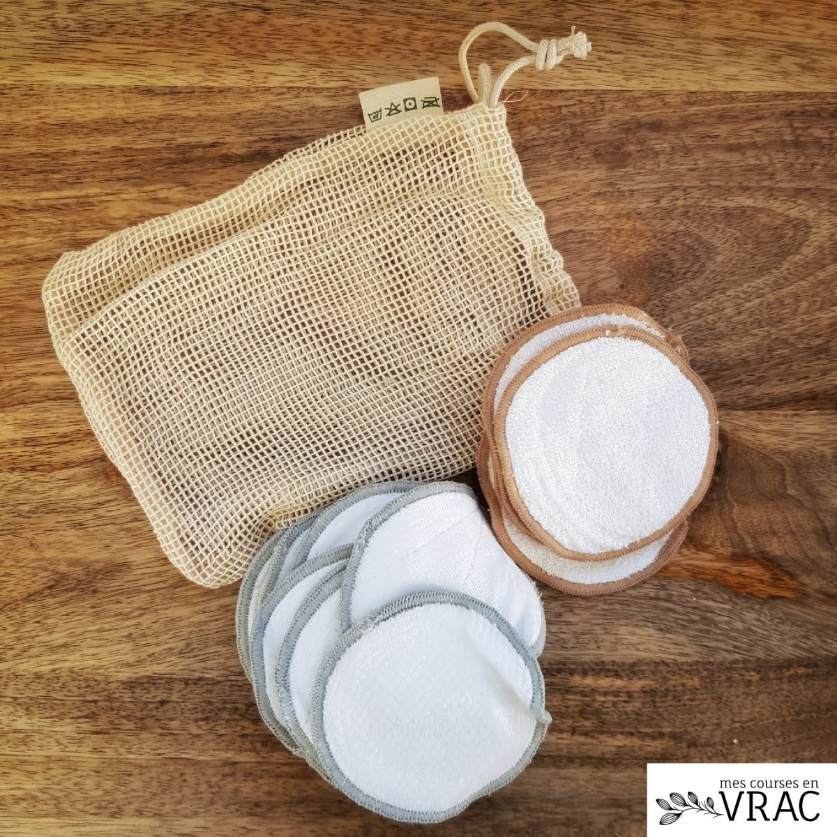 RÉUTILISABLES : les disques démaquillants en bambou sont lavables. Une fois qu’ils sont utilisés, déposez-les dans leur filet de lavage et passez-les en machine à 30°.