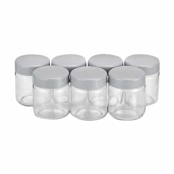 Lot de 7 pots de yaourt en verre pour Yaourtière Severin – disponible ici. Nombre de pots : 7 Capacité des pots : 150ml Pots en verre
