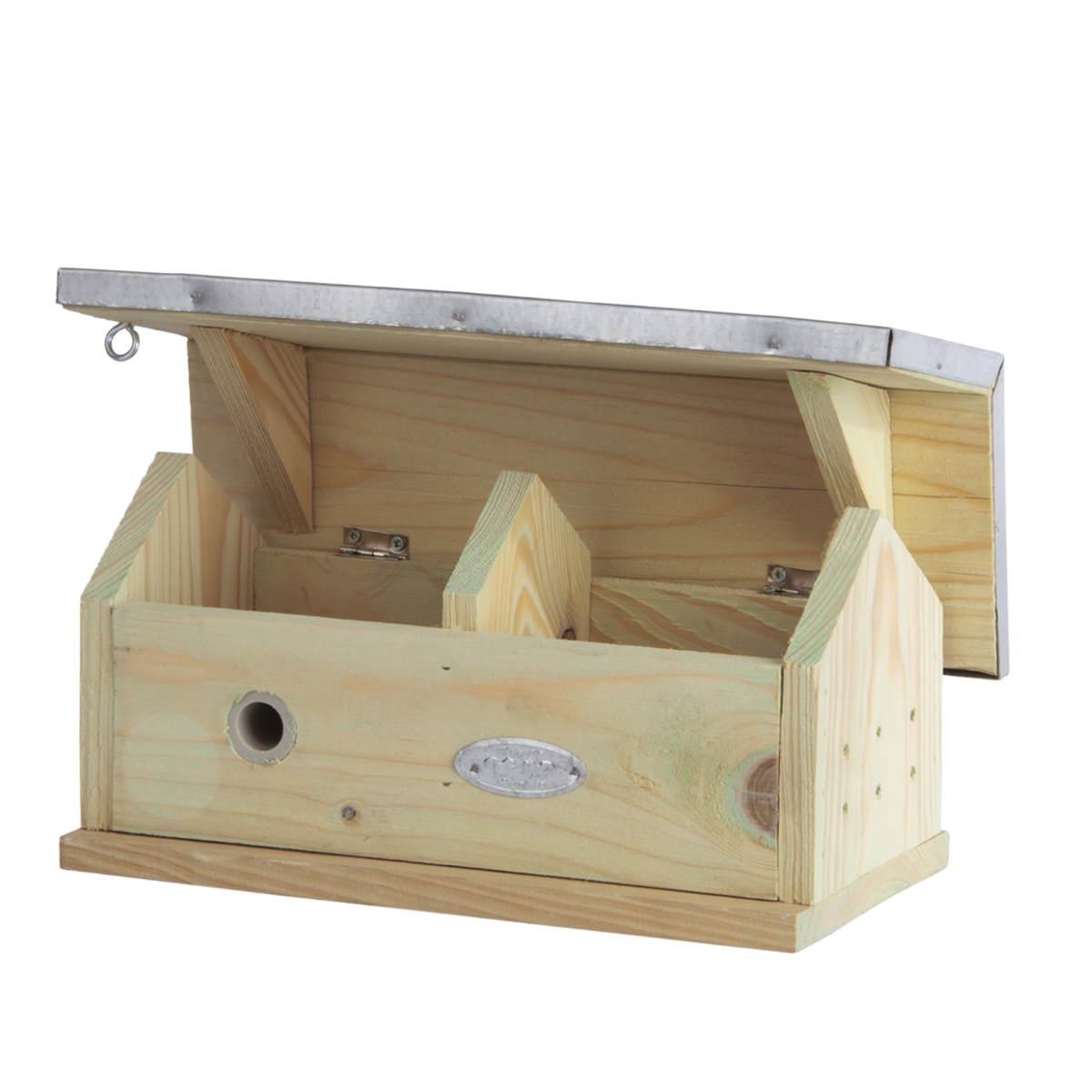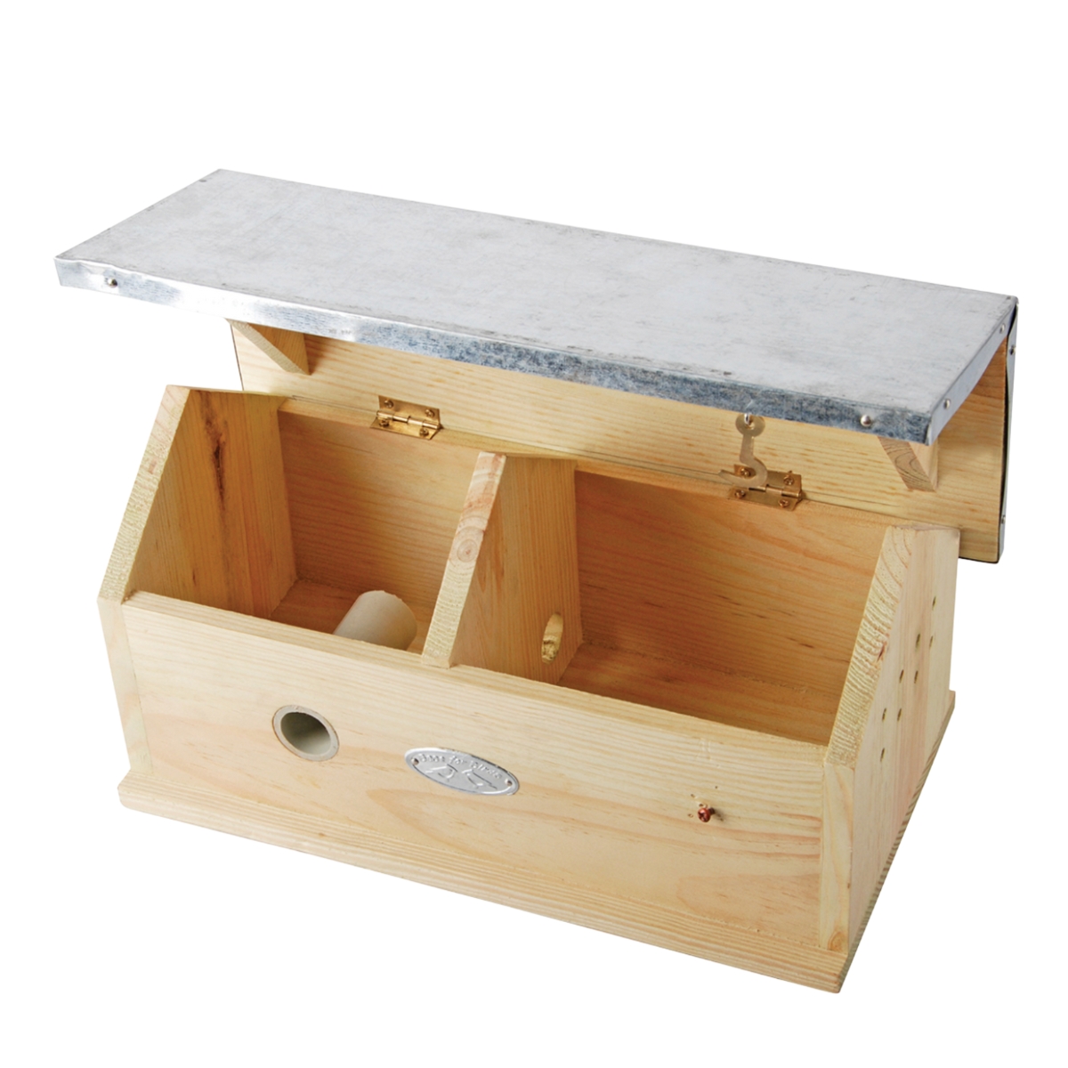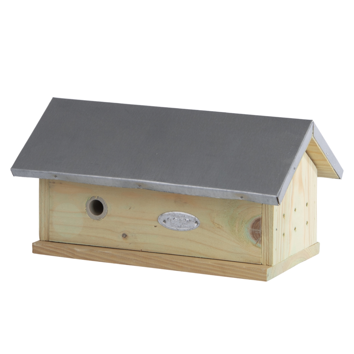 Matériaux : bois de pin, toit en zinc, PVC – conçu pour résister aux intempéries.