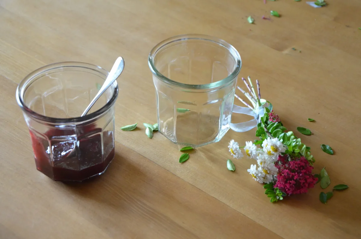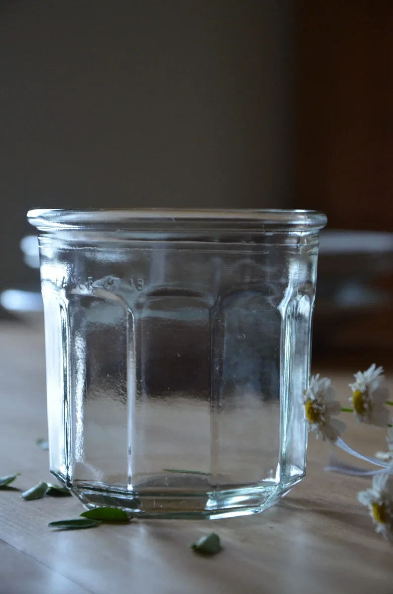 Ancien pot à confiture en verre grande capacité sans couvercle.
