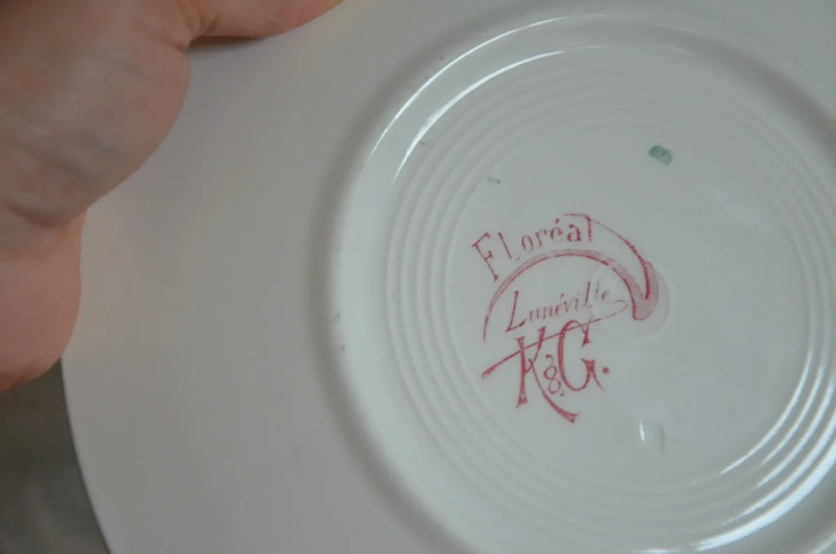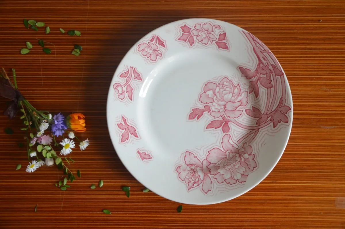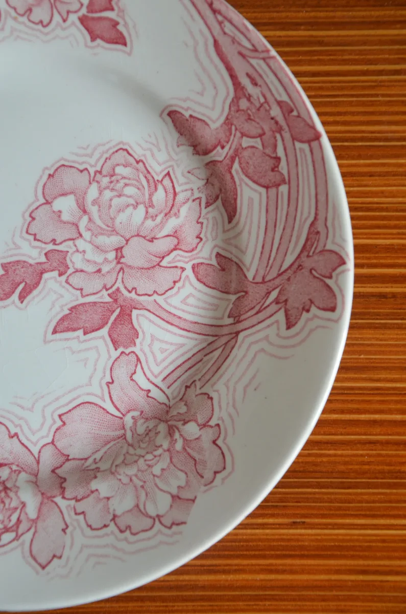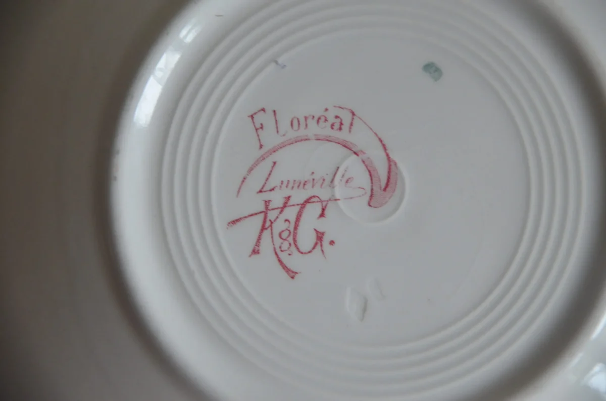 Assiette de la manufacture Lunéville, KG, modèle Floréal, motif fleurs rouge.