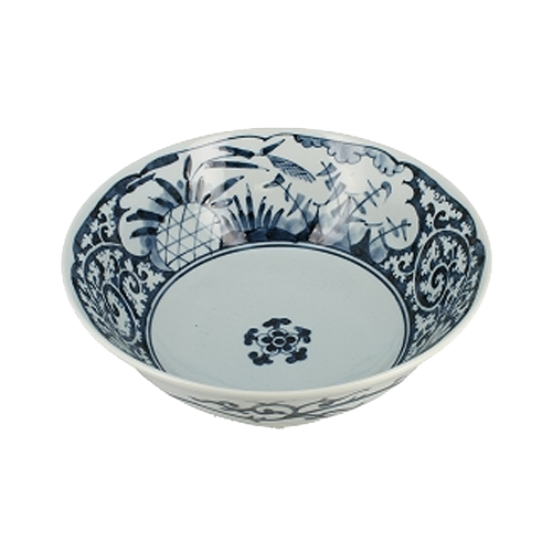 Bol à ramen blanc avec des motifs de paysage de couleur bleu.