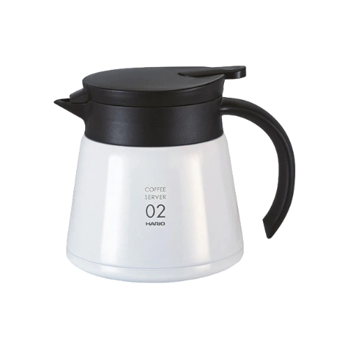 Cette Carafe japonaise isotherme Hario V60, taille 2 de 600 ml comporte une double paroi pour une conservation d’environ 1 h 30 au chaud et 2 h au froid. Faite d’acier inoxydable, elle est 100 % hermétique pour une meilleure conservation de la chaleur. Il suffit d’un clic sur la gâchette située sur le couvercle pour ouvrir la carafe et verser le café. L’anse en plastique assure une prise en main agréable. Elle a une contenance de 600 ml, soit environ 4 tasses. Elle se combine très bien avec les dripper Hario V60, qui peuvent se fixer directement dessus pour préparer le café et directement dans la carafe.