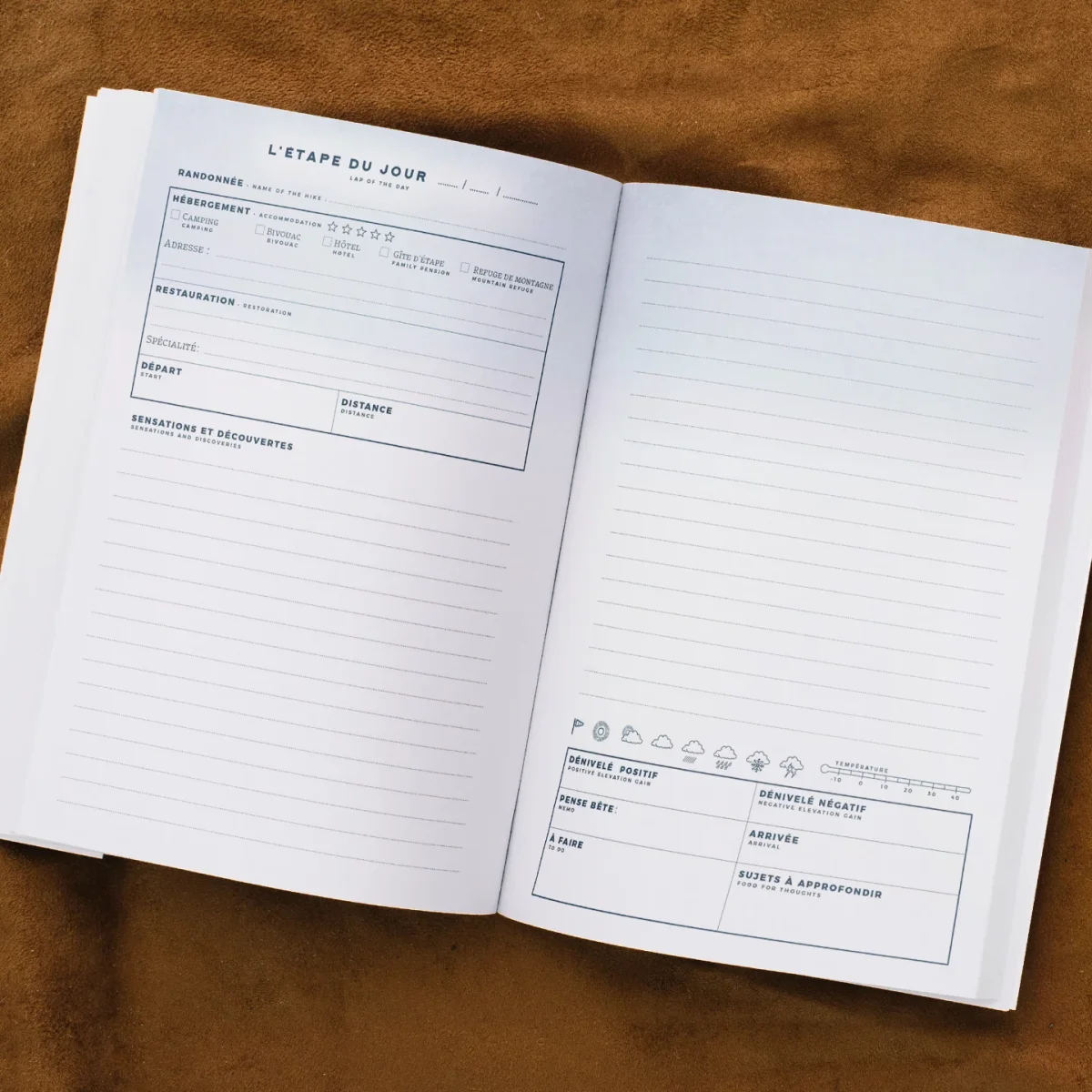Les adeptes de la marche à pied n’ont qu’à bien se tenir avec ce carnet de randonnée. Il permet de garder une trace de ses randonnées, balades, trecks ou bivouacs. Entre journal de bord et journal de voyage, ces pages thématiques et guidées permettent de préparer et/ou se remémorer ses aventures.