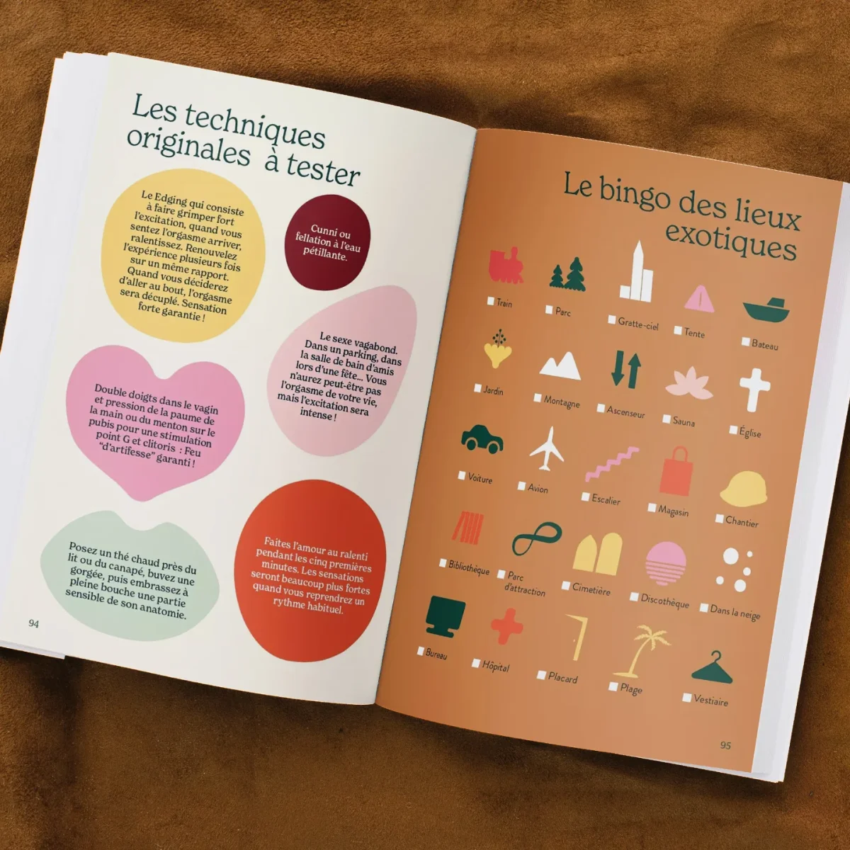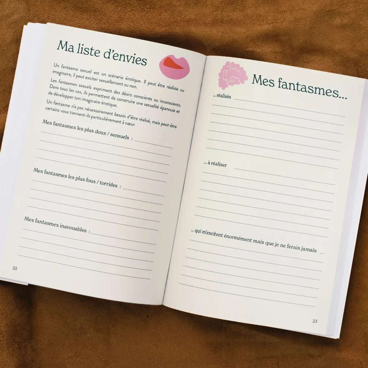 Pour consolider votre bonheur intime, ce carnet est un compagnon idéal. Il favorise la découverte de soi et incite à écrire ses ressentis et envies. Rêves érotiques, fantasmes détaillés, rencards les plus fous, orgasmes inoubliables : tous ces désirs et souvenirs y sont conviés. On se laisse guider par les pages à compléter de façon ludique sous forme d’un bingo, de cartes, de conseils ou de questions intimes. Des pistes d’exploration dans lesquelles on a envie de se plonger avec beaucoup d’attention.