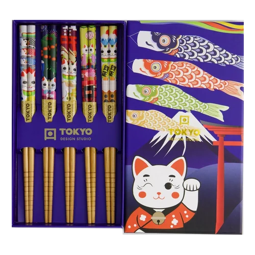 Coffret de 5 pairs de baguettes en bambou de petite taille.