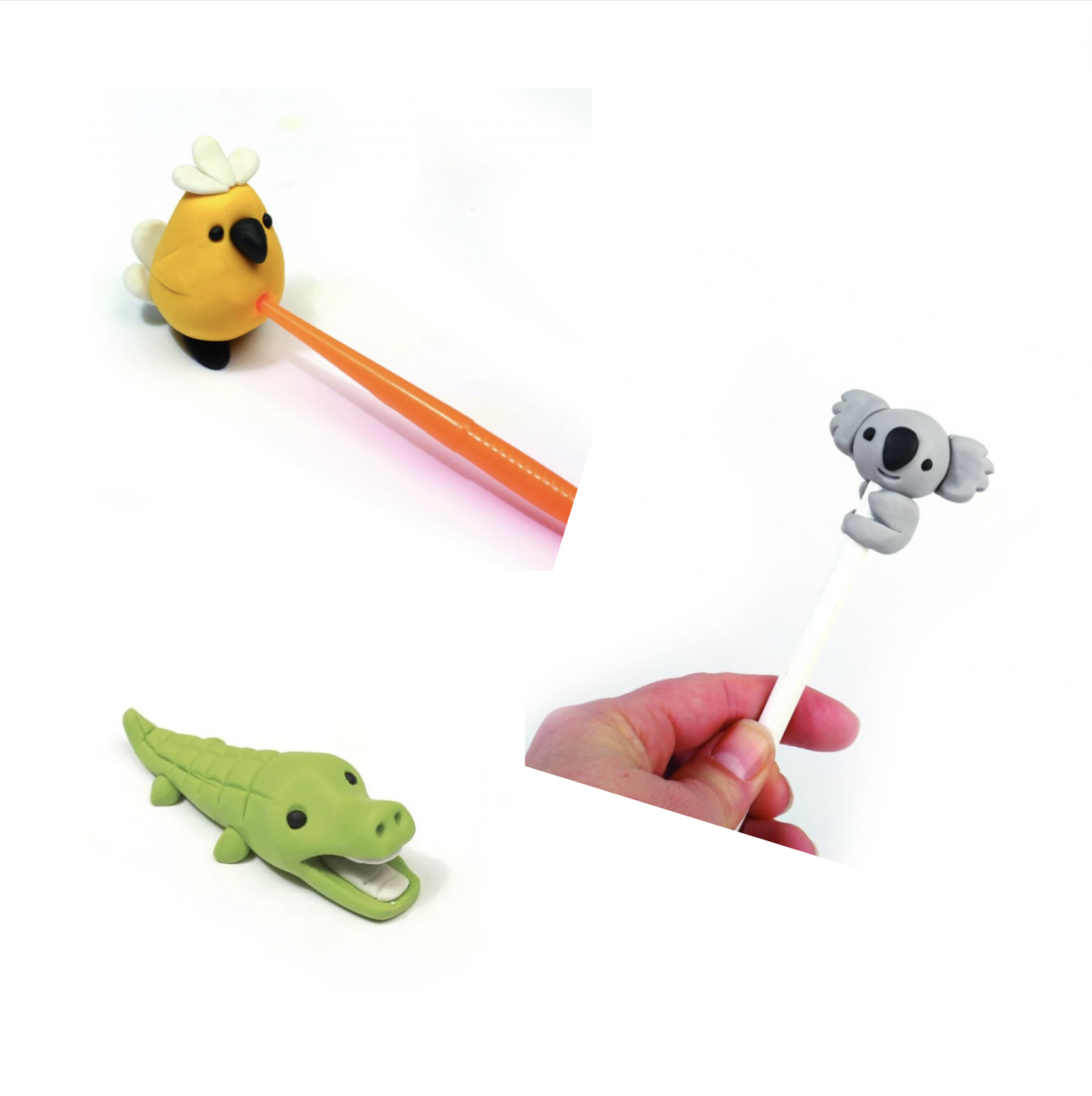 - Modelez les formes de vos animaux dans les pâtes grâce aux outils présents dans le kit (la notice montre pas à pas la création de chaque animal)
