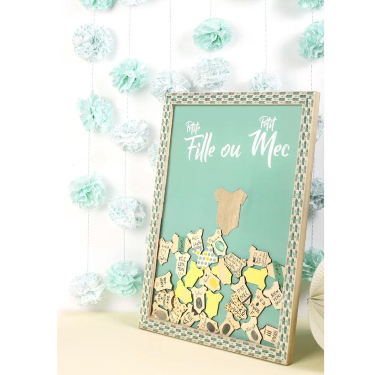 Un moment riche en émotion qu’est la découverte du sexe de votre futur enfant. Le suspens est souvent à son maximum et chacun y va de son petit pronostic. Estimation du poids, de la taille, du sexe, du prénom ou petite anecdote à inscrire sur le petit body en bois qui viendra se glisser dans le cadre à souvenirs. Découvrez également le cadre à message pour mariage ou anniversaire ICI