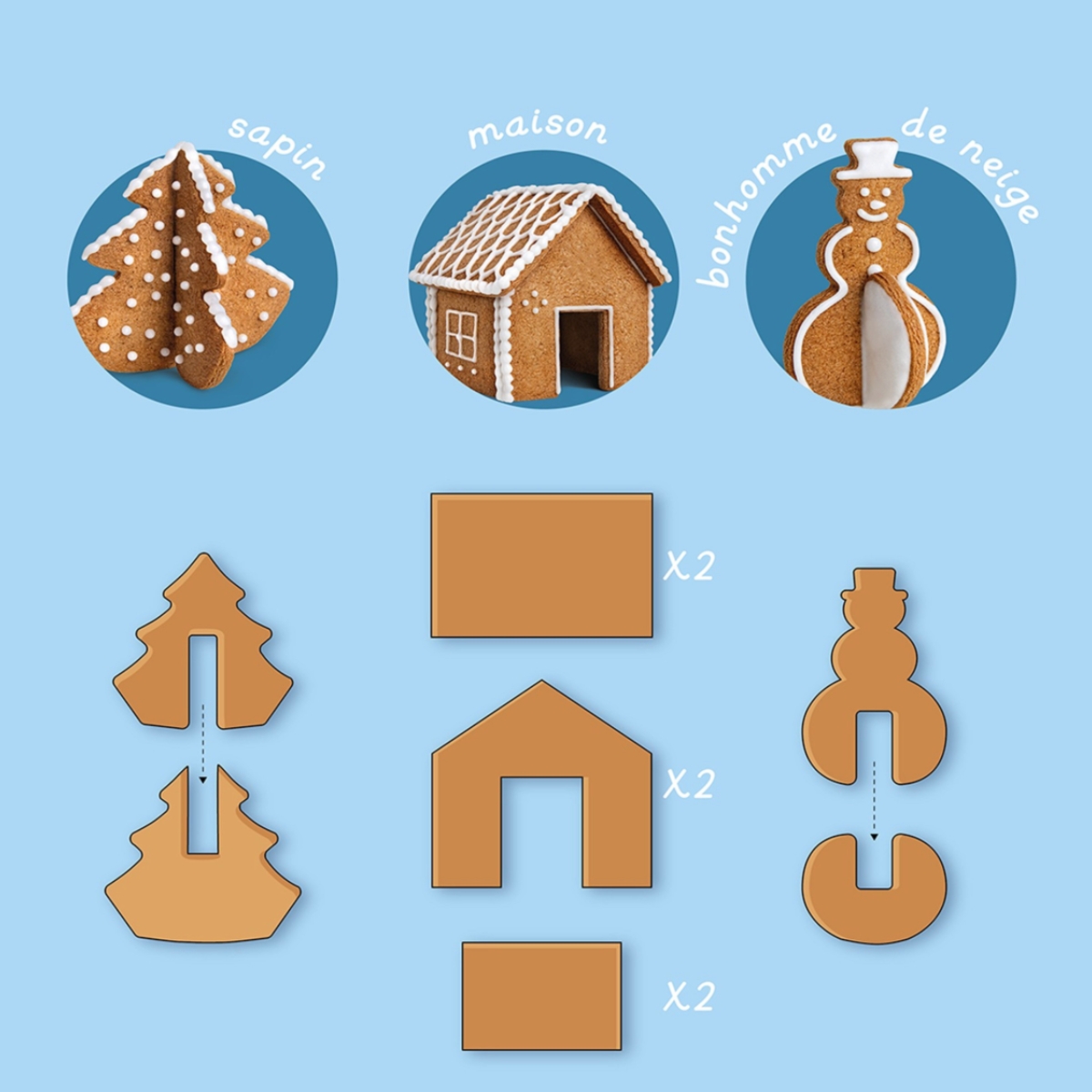 - 7 emporte-pièces en métal pour assembler les 3 décors de Noël