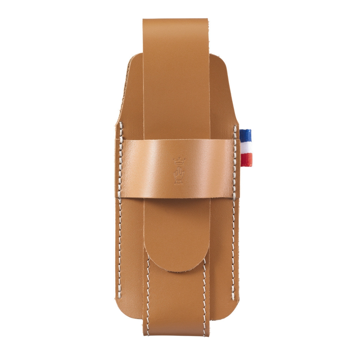 Compact et discret, cet étui s’intègre facilement dans une poche ou un sac, vous permettant de transporter votre couteau en toute sécurité. Son design sobre et intemporel reflète un savoir-faire artisanal qui séduira les amateurs de beaux objets et de qualité durable.
