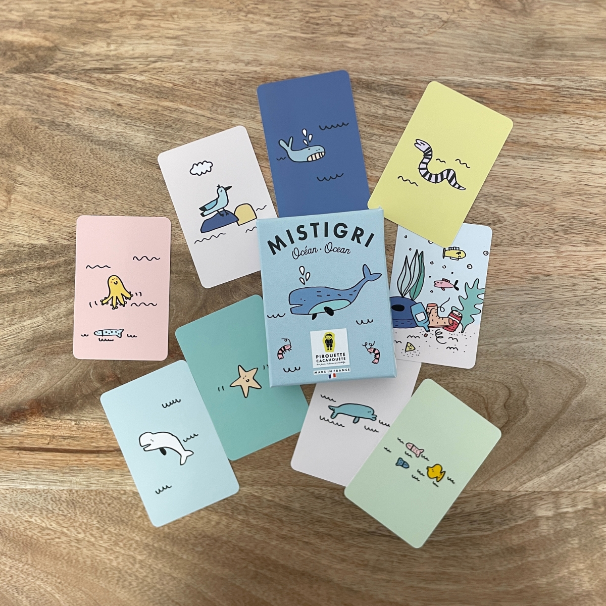 Plongez dans l’univers fascinant des fonds marins avec le jeu de cartes éducatif Mistigri Océan. Ce jeu coloré et amusant transforme chaque partie en une aventure riche d’apprentissages et de rires. Le défi ? Éviter de finir la partie avec la carte Mistigri, un rappel visuel des déchets marins et de leur impact sur nos océans. Idéal pour les enfants comme pour les adultes, ce jeu d’observation sensibilise à la préservation de la nature tout en offrant des moments inoubliables en famille ou entre amis.