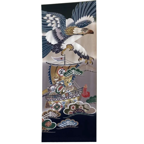 Cette tâpisserie fabriquée à partir d’un haori de garçon recyclé (Haori utilisé pour la fête des enfants) est aussi un très bel objet traditionnel japonais à offrir, il saura rendre votre pièce luineuse et attrayante. Une pièce de cinq yens est utilisée en bas dans l’espoir qu’elle apportera un bon karma.
