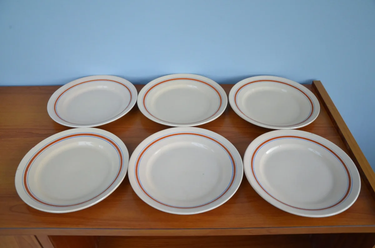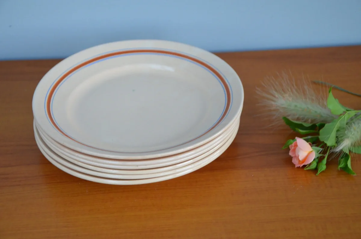 Lot de 6 assiettes à dessert, 4 ébréchés , K&G Lunéville, France, modèle Gaston.