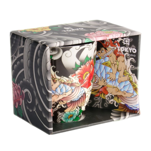 Ce joli coffret composé d’un mug en céramique est un cadeau idéal pour les amoureux de tatouages japonais avec la forme d’un mug occidental. Dimensiosn : 8,5 cm de diamètre, 10,2 cm de hauteur. Contenance 380 ml.