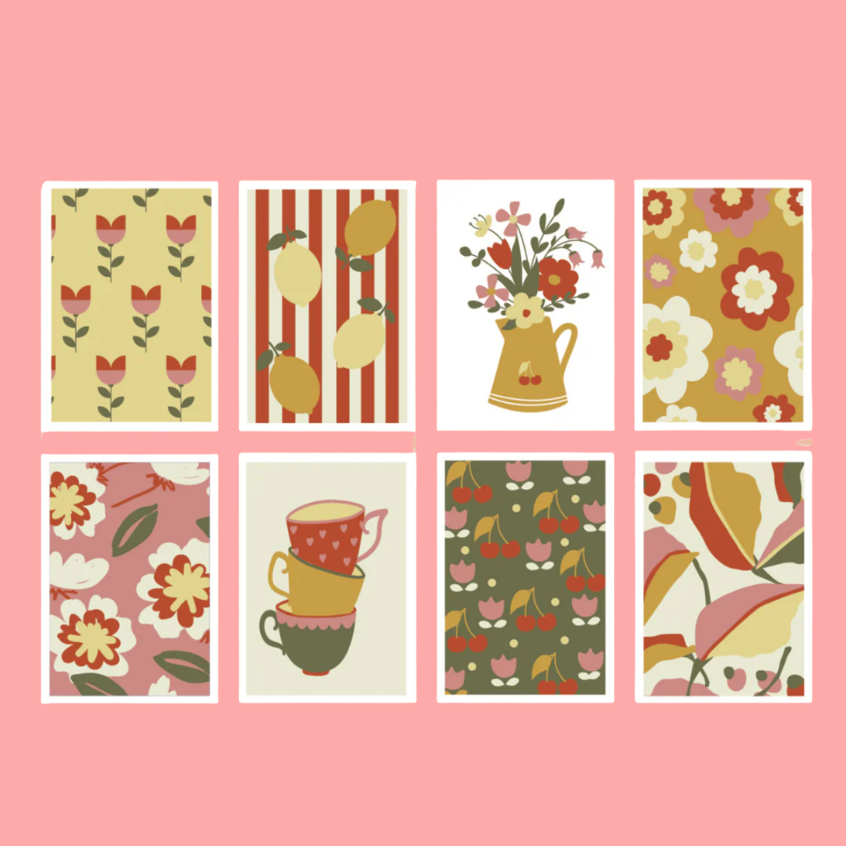 Contenu du kit Peinture à numéro : set de 8 cartes à peindre Rétro déco :