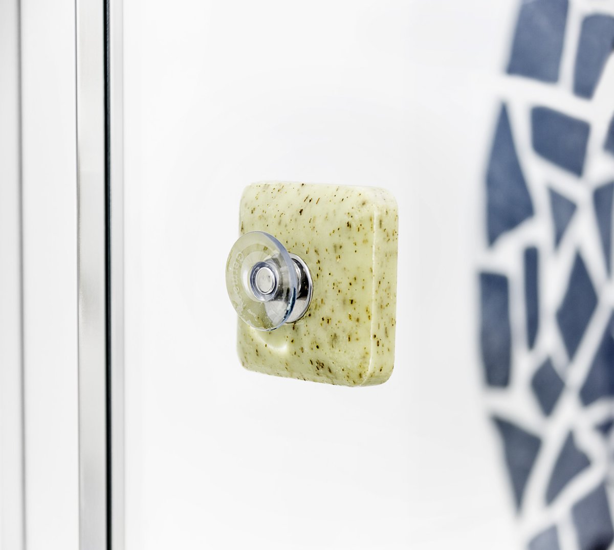PRATIQUE : Cet ensemble se compose d’une base aimantée à ventouse que l’on fixe par pression sur toute surface lisse comme le carrelage, la paroi de douche en verre ou le lavabo en céramique, en pierre, en porcelaine… Et d’une autre partie métallique indépendante, dentée, qu’on enfonce dans le savon. Le savon est ainsi solidement fixé sur sa base quasiment n’importe où.
