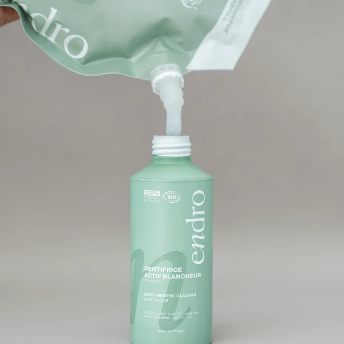 Offrez à votre sourire le soin qu’il mérite tout en réduisant vos déchets avec cette éco-recharge de dentifrice actif blancheur. Bien plus qu’un simple dentifrice, elle permet de recharger deux fois votre flacon, soit l’équivalent de 5 tubes classiques de 70 g, pour une routine d’hygiène plus responsable et durable.