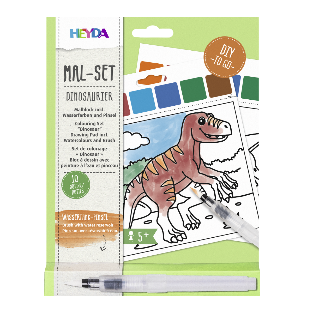 Laissez parler votre imagination avec ce coffret de coloriage sur le thème des dinosaures ! Il contient 10 feuilles décorées de fascinants dinosaures. Grâce aux pastilles de peinture intégrées, il vous suffit d’humidifier le pinceau et d’activer les couleurs avec un peu d’eau pour créer de superbes illustrations selon vos envies. Ce kit est également proposé en version : Princesse Ferme Zoo