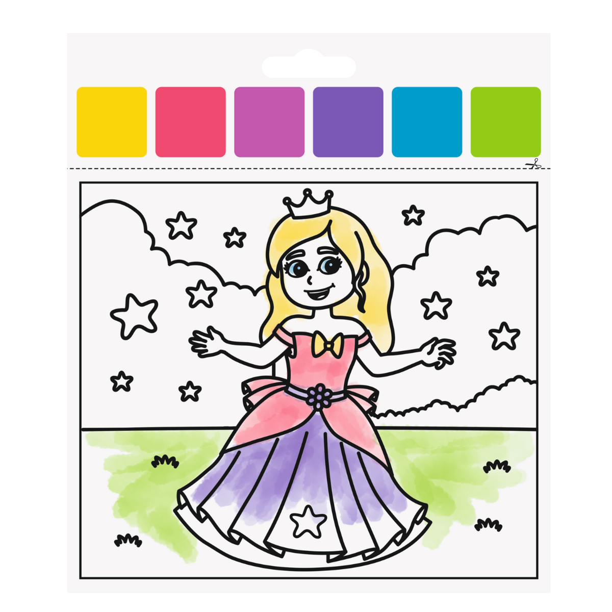 Laissez parler votre imagination avec ce coffret de coloriage sur le thème des princesses ! Il contient 10 feuilles décorées de magnifiques châteaux, couronnes et autres éléments féeriques. Grâce aux pastilles de peinture intégrées, il vous suffit d’humidifier le pinceau et d’activer les couleurs avec un peu d’eau pour créer de superbes illustrations selon vos envies. Ce kit est également proposé en version : Dinosaure Ferme Zoo