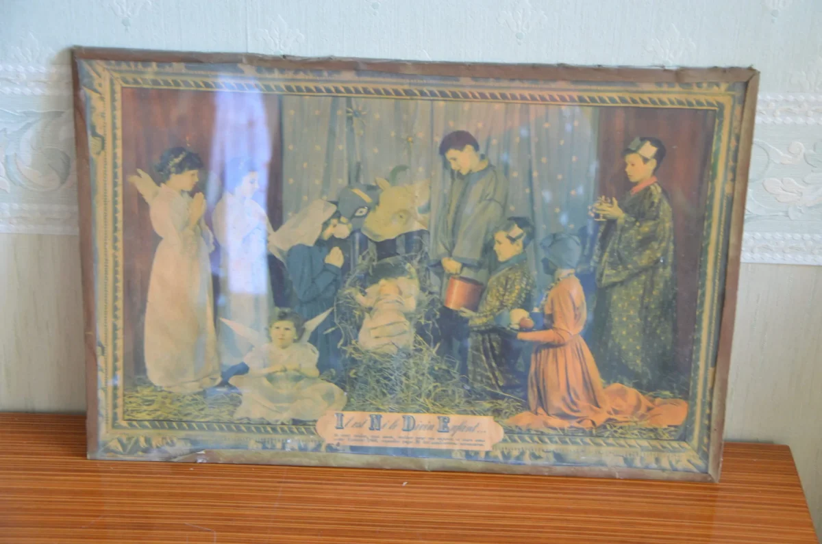 Tableau sous verre « il est né le divin enfant », 1946